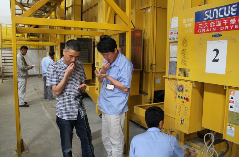 來到收購現(xiàn)場,周副局長首先向戰(zhàn)斗在一線的工作人員一一握手,致以親切的慰問,隨即深入庫區(qū)進(jìn)行實(shí)地查看。在糧食烘干作業(yè)現(xiàn)場,周副局長查看了糧食烘干機(jī)的運(yùn)轉(zhuǎn)情況,向工作人員詳細(xì)詢問了小麥水分、雜質(zhì)等情況,仔細(xì)查看了農(nóng)戶送來的潮糧和正在自然曬干的潮糧的質(zhì)量,并親自撿起麥子放到嘴里檢驗(yàn)小麥品質(zhì)。針對今年小麥?zhǔn)諆σ?guī)模激增,倉容緊張的情況,為確保收購工作順利安全,周副局長特地前往新豐、步云兩個(gè)代收點(diǎn)查看收購設(shè)施設(shè)備,仔細(xì)詢問并查看了倉庫倉容及安全狀況,并作出指導(dǎo)部署。在實(shí)地查看過程中,周副局長還著重強(qiáng)調(diào)了要做好收購期間人員及糧食保管的安全工作,要求提高重視程度,強(qiáng)化安全措施,堅(jiān)決杜絕安全事故發(fā)生。