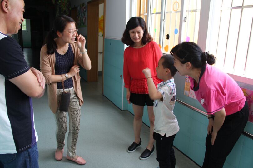 在陽光樂園陳雪娟園長的帶領(lǐng)下,大家參觀了孩子們的教室和午休室,觀摩了孩子們的康復(fù)訓(xùn)練。參觀過程中,陳園長為大家介紹了學(xué)校目前在校孩子的總體情況、康復(fù)狀況,以及學(xué)校的師資力量、近期發(fā)展情況,大家為這里的特殊兒童不易的成長經(jīng)歷深深感動,也對老師們付出的辛勤汗水深表敬意。在參觀過程中,不時有孩子經(jīng)過我們身邊向大家問好,雖然他們打招呼的方式略微有些不自然,但是他們友好、友善的心大家都能感受到。