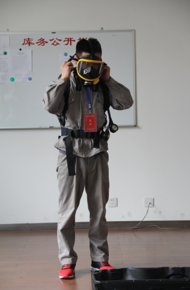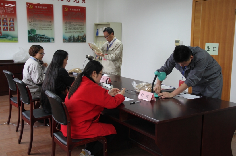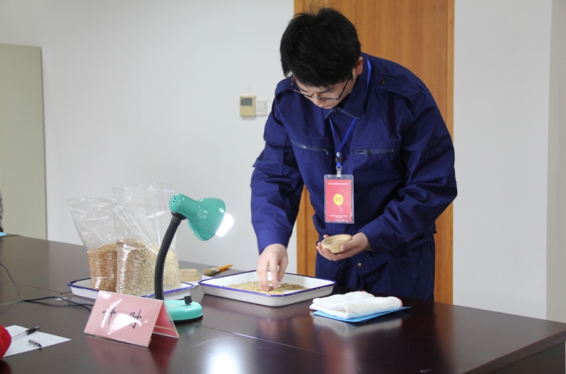 本次競賽分理論知識考試和技能操作比賽兩個部分,其中技能操作比賽又分為感官判定糧食質量和佩戴自給式空氣呼吸器兩個項目。參賽選手們首先進行理論知識考試,經過一個小時的緊張答題后,又馬不停蹄的按照抽簽順序依次進行實操項目。在感官判定糧食質量比賽項目中,各參賽選手通過感官以及木礱協(xié)助的方式,依次識別所給定的糧食品種,并判斷相關質量指標。佩戴自給式空氣呼吸器項目則主要考察選手對空氣呼氣器佩戴操作的熟練性和連貫性。本次比賽的參賽選手都是各支參賽代表隊中派出的“頂尖高手”,從他們的一抓一握一收一放間,向我們展現(xiàn)了嘉興糧油保管員的風采。