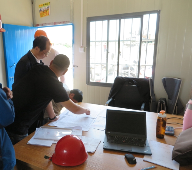 張局首先查看了施工臨時(shí)用房建設(shè)情況及施工場地準(zhǔn)備情況,隨后聽取了施工單位現(xiàn)場總指揮對(duì)工程工期計(jì)劃、施工進(jìn)展、人員設(shè)備配置等情況的匯報(bào)。