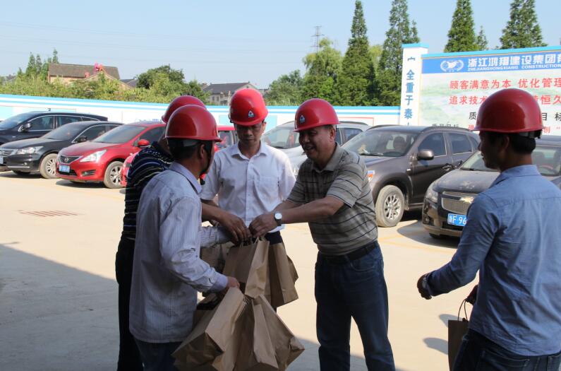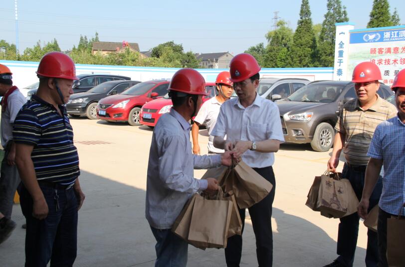 7月21日下午,嘉興市商務(wù)(糧食)局局長張建生、副局長屈達貴、監(jiān)督管理處處長俞菊榮一行,冒著炎炎酷日深入市本級中心糧庫遷建工程工地現(xiàn)場,看望慰問在高溫下堅守的一線工作人員和工地工人,并為大家送去了毛巾等防暑用品。