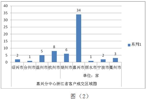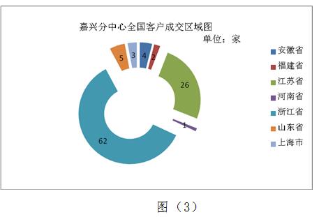 嘉興分中心成立之初,每場(chǎng)參與網(wǎng)上競(jìng)拍的單位約6-7家,隨著嘉興分中心日益成熟運(yùn)行模式和良好的服務(wù)態(tài)度,與嘉興分中心合作的企業(yè)已從嘉興市地域輻射到浙江省8個(gè)市(如圖2),且不滿足于此,將交易半徑逐漸輻射到上海市、江蘇省、山東省、福建省、安徽省、河南省等地(如圖3)。