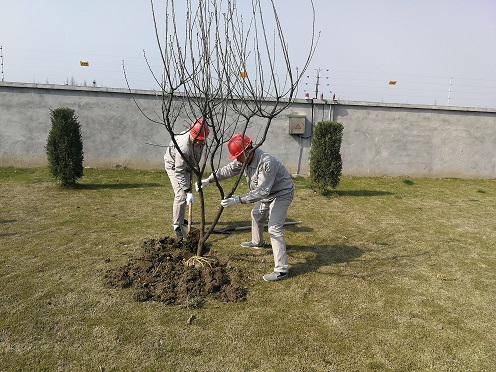 9點30分,植樹小隊到達了庫區(qū)西側(cè)的綠地。同志們自帶鐵鍬、手套等工具,大家分工協(xié)作,老同志揮鍬鏟土、年輕的同志提苗扶正,認真做好每一道工序,確保樹苗能夠茁壯成長。經(jīng)過一小時的努力,梨樹、李子樹、桃樹整齊排列,讓原本單一的綠地煥發(fā)了勃勃的生機。