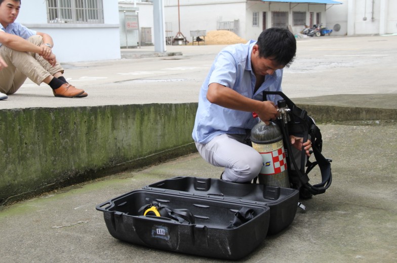為進一步提高公司糧油保管員在日常工作中的安全意識和安全技能,增強緊急情況下自救與互救能力,根據(jù)公司員工綜合素質(zhì)教育計劃,于8月25日上午在中心糧庫開展了一次空氣呼吸器佩戴操作比賽和倉內(nèi)應急救援演練。全體糧油保管員參與比賽及演練。