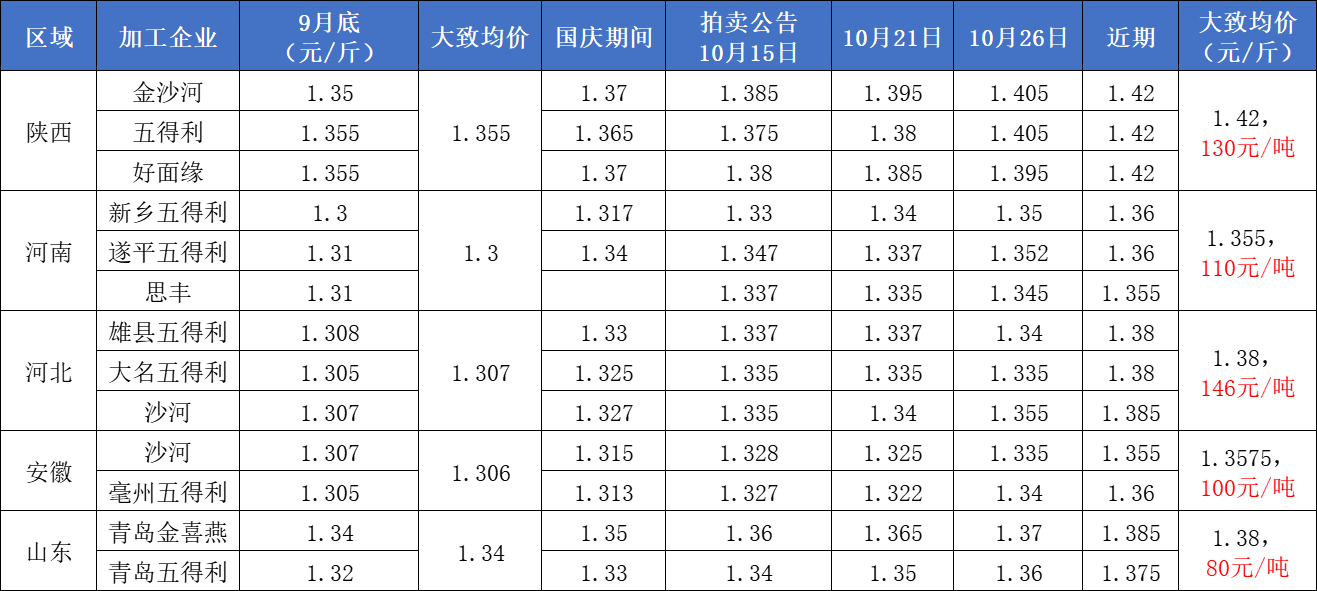 近一個月來,主產(chǎn)區(qū)小麥經(jīng)歷了一大波上漲行情。加工企業(yè)最近還在互相比賽著加價,而且是一分二分三分地漲,陜西最高價達到1.42,河北山東河南正在逼近1.4關(guān)口。