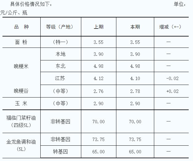 據(jù)監(jiān)測,2022年1月1日~1月17日,目前氣溫適宜糧油儲存,加上春節(jié)臨近,糧油將迎來銷售旺季,市區(qū)各糧油經(jīng)銷商備貨積極,市場成品糧油供應品種豐富、貨源充足、銷售價格穩(wěn)定、供應秩序良好。原糧晚粳谷市場價格小幅上漲,市場價格走勢向上;飼料市場供應價格穩(wěn)定,貨源供應充足,但銷售價格仍處于高位。